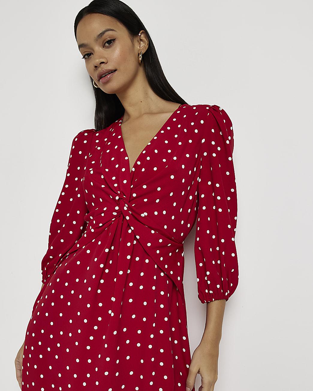 River Island Red Spot Long Sleeve Mini Dress Lyst Uk